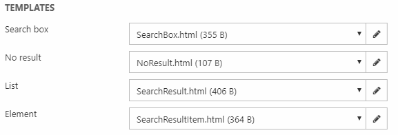 - The No result template, which controls the layout and style of the page shown when no results are found