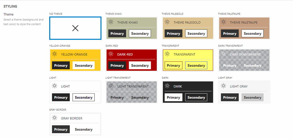 Sets a global color scheme for a website - mirrored by all other color swatch fields. Choose between 11 colors - 5 brand colors, 5 neutral colors, and 1 custom (non-global) color. |