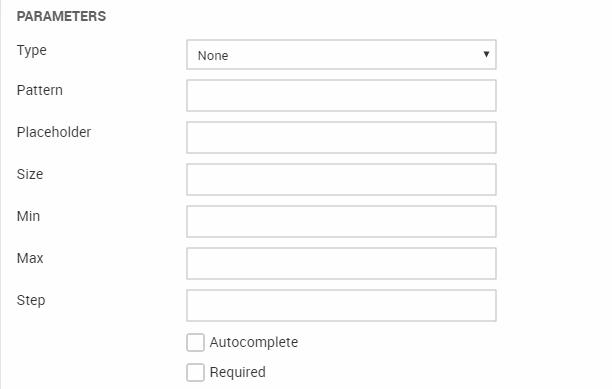 Selecting an HTML5 input field comes with extra parameters (Figure 9.1) for controlling the type and styling of the field.