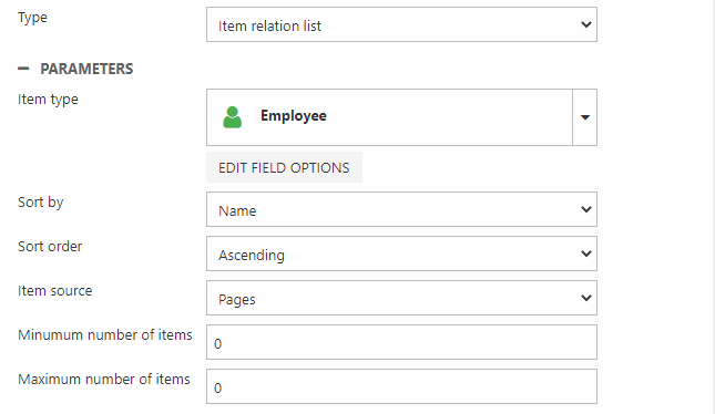 When you add this field type to an item type you have access to the following parameters (Figure 1.2):