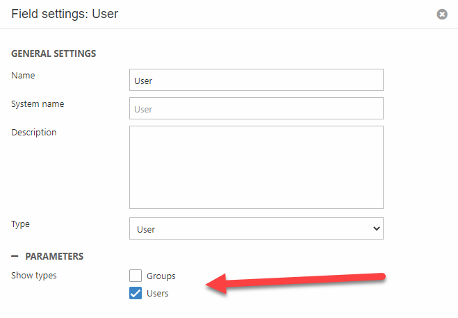 When adding this field to an item type, you can specify if the editor will select Users or User groups – the default is users (Figure 1.2)