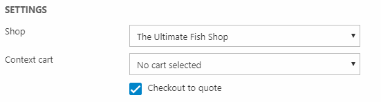 The first settings are used to set a shop and (optionally) an order context for the cart (Figure 1.1). You can also check checkout to quote if this is supposed to be a quotes cart.