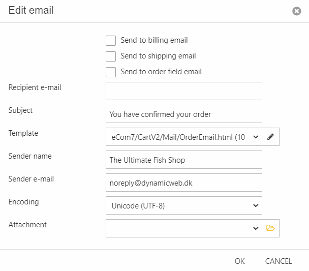 Tip: You can use {OrderID} in the subject to insert the order number in the confirmation email.