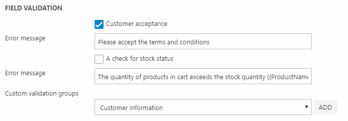 The field validation settings (Figure 4.1) allow you to apply validation rules during checkout.