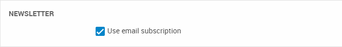 The Newsletter section(Figure 6.1) is used to make it possible to update the email permission field for the user during checkout. The current value is available via the Ecom:Cart.UseNewsletterSubscription tag.
