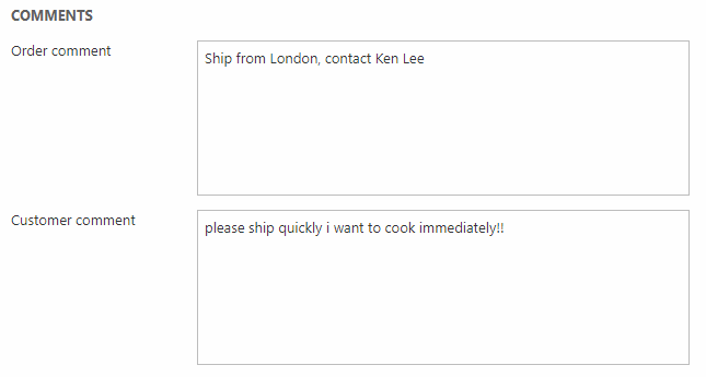 Below the basic details, the comments section (Figure 3.1) contains any order comments and customer comments associated with the order.