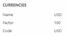 The currencies section (Figure 6.1) shows you the the details of the currency of the order