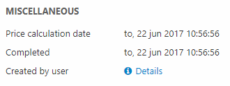 The Miscellaneous section (Figure 8.1) lets you review the price calculation date and the completion date (orders only). You can also access the user details of the (registered or unregistered) user who placed the order by clicking Details.