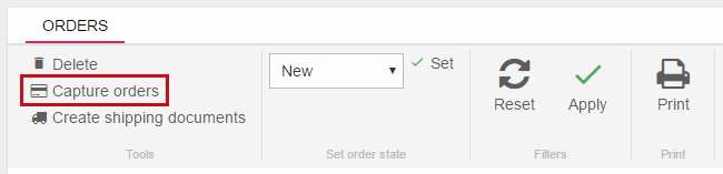 When you have captured an order manually the state is changed to Captured in the order list. Some payment providers (mainly the US providers) have the option to setup if the payment should only be authorized or both authorize and capture. If authorization and capture is used, the amount is sent for authorization, and if approved, is automatically captured. Then all incoming orders are set to Captured in the order list when successfully completed. - Split captured