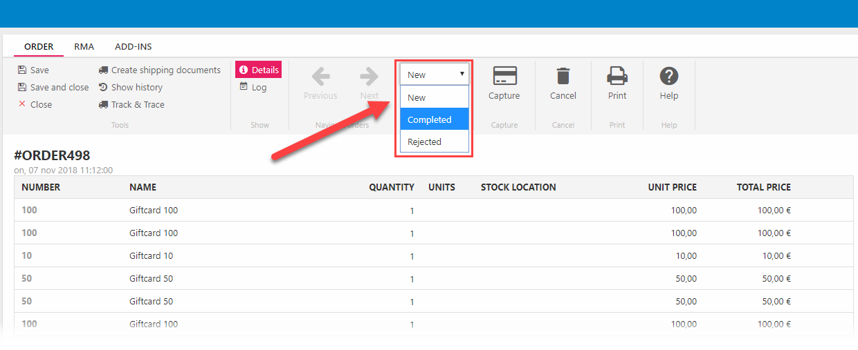 You can also change the order state for multiple orders from the order list.