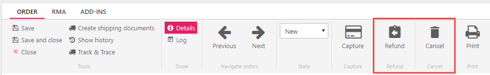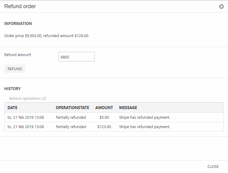 The exact options are dependent on the payment gateway. You can also see a list of previous refund operations on the order.