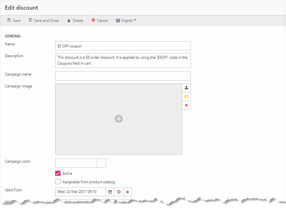 - In the general section enter a name, e.g. $5 OFF Coupon