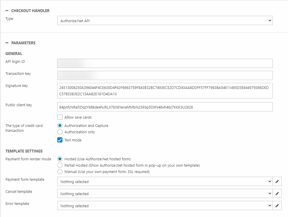 To configure the Authorize.Net API checkout handler you must obtain the following keys: