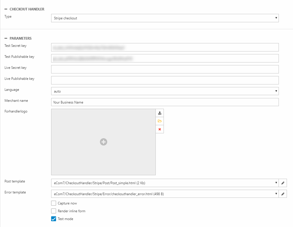 Once you have obtained the keys you can configure the Stripe checkout handler: