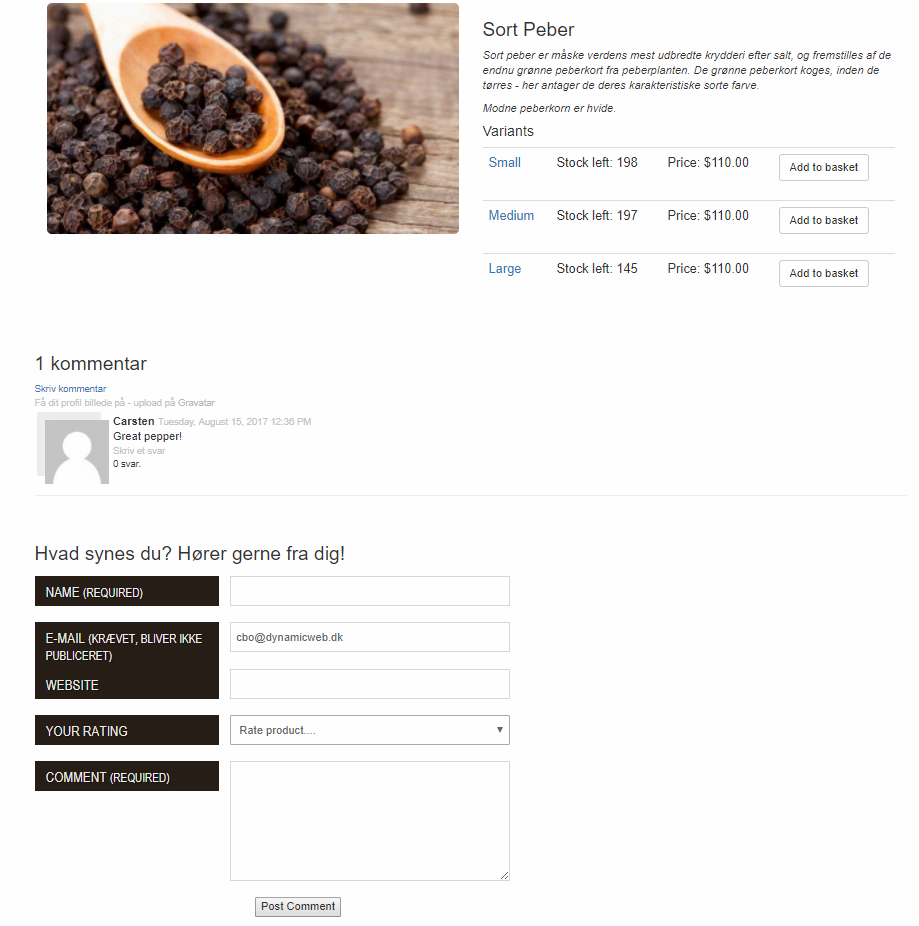 This template supplies the layout for a basic comment box, and hooks into the Dynamicweb backend where you can review and moderate the comments posted.