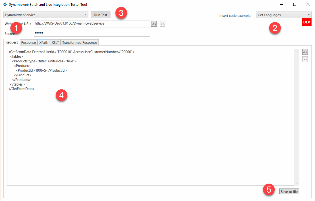 The Dynamicweb Connector test tool is a small and very useful tool which allows you to submit requests and receive responses from web services – either: