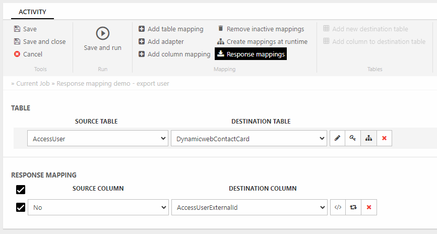 In order to stamp informations like these back onto the source, the response mapping functionality of integration activities can be utilized.