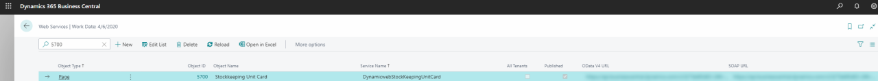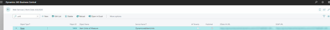- Locate and copy the Odata v4 URL in Business Central Web Services