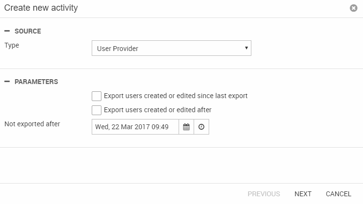 Below, you will find information on using the User Provider as a source provider (i.e. when exporting user data) and as a destination provider (i.e. when importing user data).