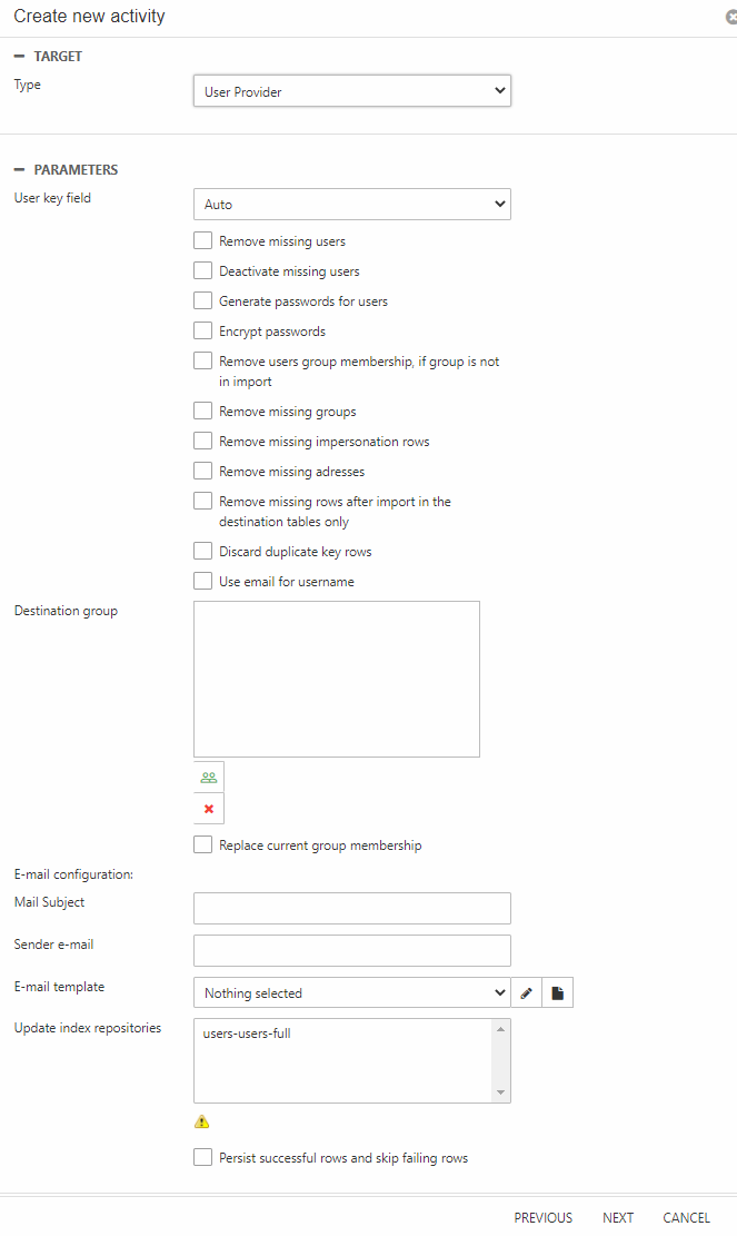 When used as a destination provider, you have access to much more extensive settings (Figure 3.1), which give you more control over the user data you import.