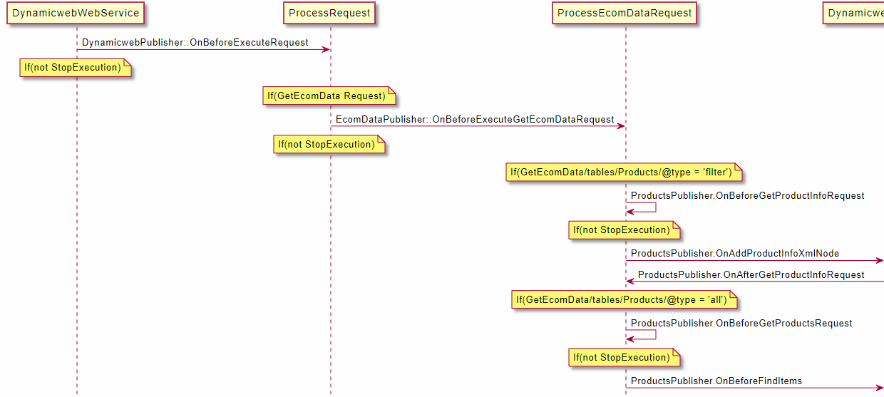 - DynamicwebProductsPublisher contains events for handling products, product groups, stock, Live integration product info request, etc.