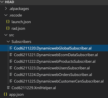 - DynamicwebOrdersPublisher contains events for handling exporting orders, writing order notes, Live integration calculate order and create order requests, sales header and sales line objects extensibility, discounts, shipping fees, etc.