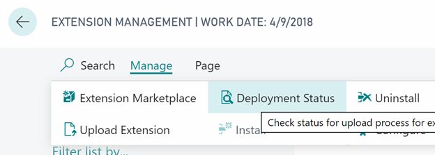 After that track your deployment status in the Extensions -> Manage -> Deployment status: