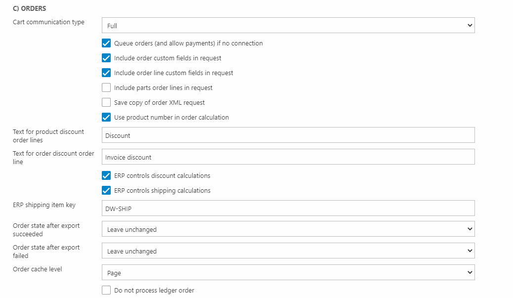 • To have D365 BC/NAV handle the calculations, check the ERP controls discount calculation checkbox in section C of the live integration settings