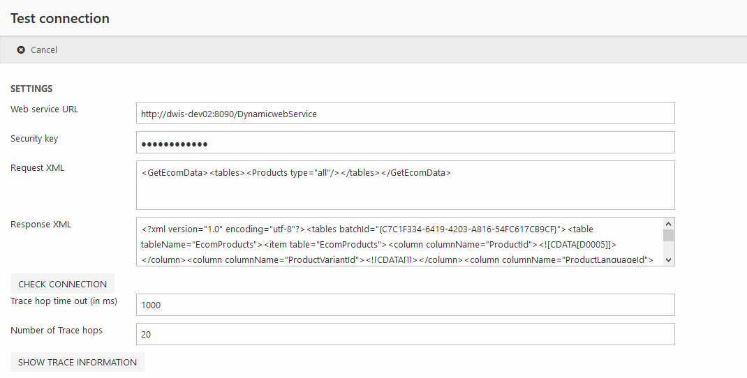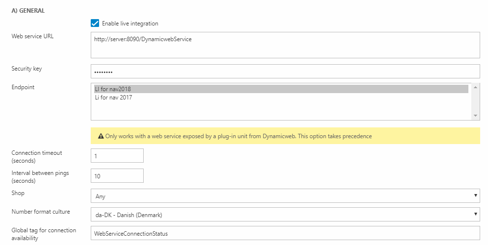 Enter the URL to the web service exposed by the Dynamicweb Connector