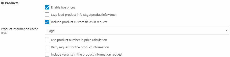 The Products section (Figure 4.1) contains settings related to retrieving live product information.