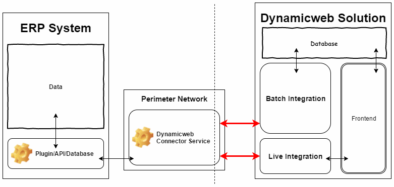 However, from your point of view both types of integration do the same thing; submit requests for data to a service - the DynamicwebConnectorService - which is installed on the remote environment (Figure 1.2).