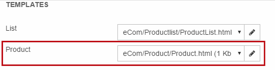 - In the templates section, select or create a List and/or details template to render the product(s) in context.