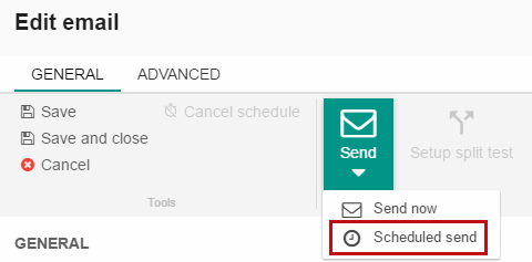 To schedule the Back-in-Stock email, click Scheduled send in the email toolbar.