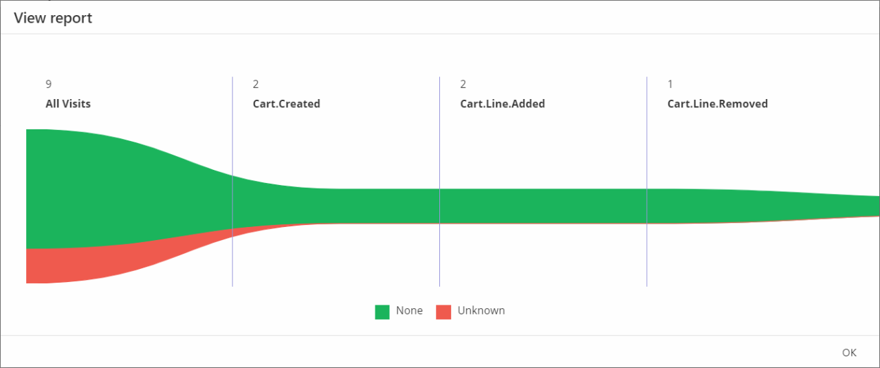 2. Funnel reporting reports on how many sessions complete various steps in a flow, e.g. Cart.Created and Cart.Complete.