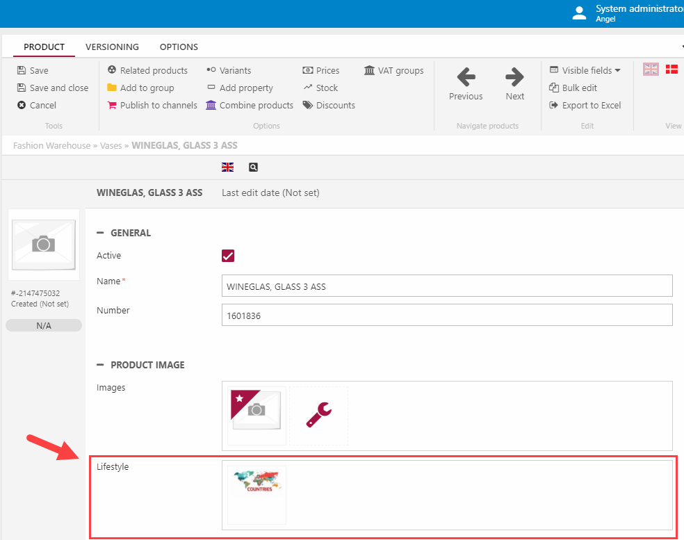 • Fallback means that assets are inherited from the main product to variants/language version if no assets have been specifically added to the asset category on the variant/language version