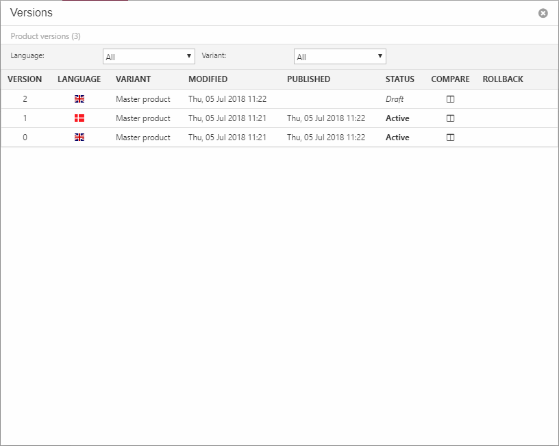 If that’s not the case, you can activate Draft mode – when this is active, edited products are kept in a draft-state until the changes are approved or rejected. Draft mode works well in conjunction with the Workflows feature.