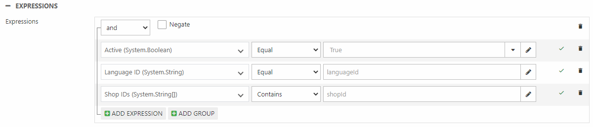 Make sure the index query has a shopId parameter and an expression using it. Typically you want to select a channel with a structure that corresponds to the service you’re integrating with. |