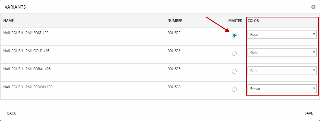 - Assign the relevant variant options to each product