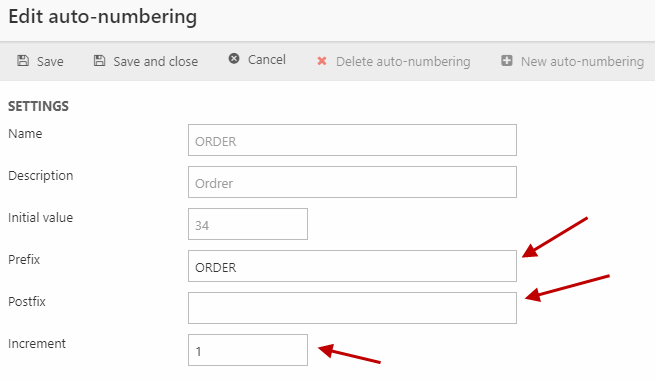Click any of the auto-numbering schemes (e.g. "ORDER") to open the edit view (Figure 23.2)