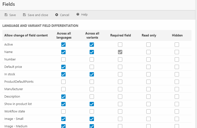 Below the Language and variant differentiation section, you can also modify the field settings for your shops (Figure 14.2).