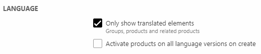 • Check the "Activate products on all language version on create" to create a version of the newly created product on all language versions (read more about what this setting does in this article)
