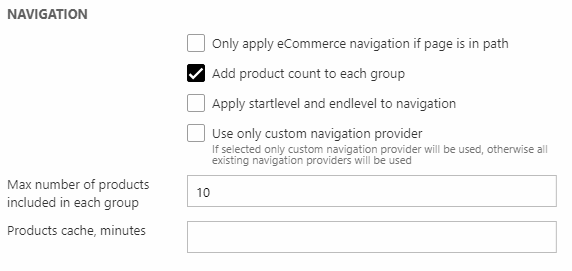 • Disable product count for backend Ecommerce tree to reduce data traffic load and increase performance when navigating the Ecommerce tree