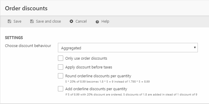 The order discount settings (Figure 19.1) control advanced behavior related to discounts: