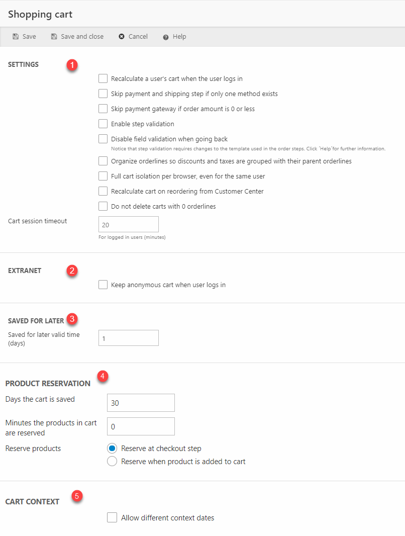 4 Days the cart is saved - This setting specifies how many days the cart is saved for if not fully completed