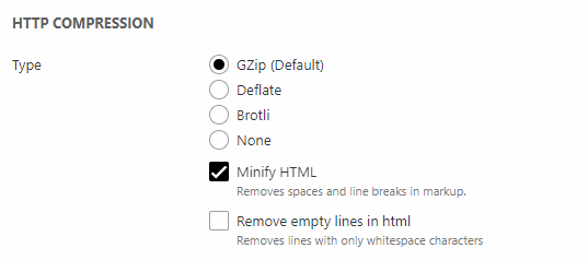 • Check Minify HTML to remove spaces and line breaks from templates before they are served - this can improve page speed in some circumstances