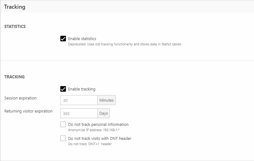 - Check Do not track visits with DNT header to not track DNT=1 headers