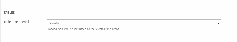 The Tables section (Figure 4.1) allows you to define an interval after which the tracking tables will be split.