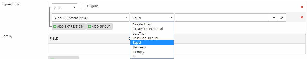 When creating expressions, you must select an operator.