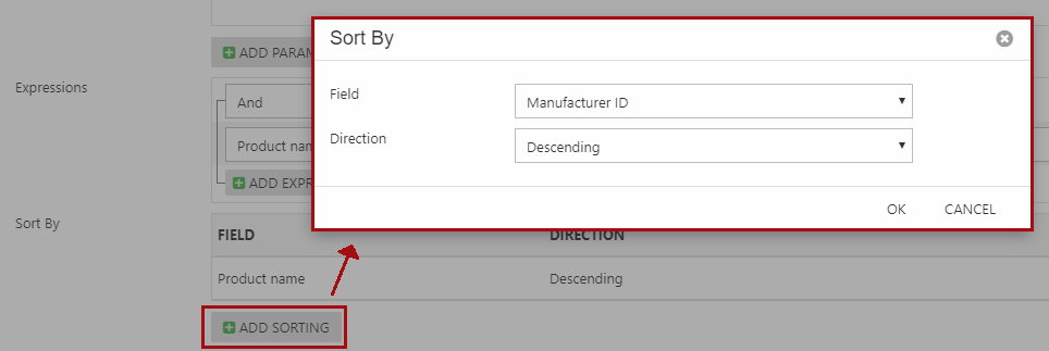 - Click Add sorting on the query page