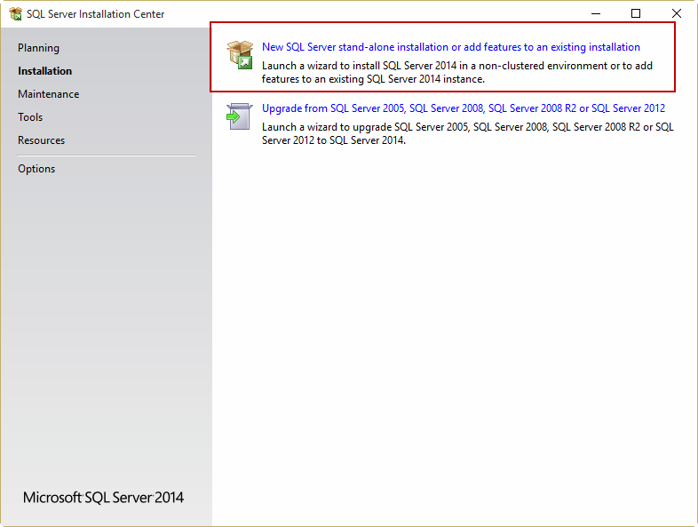 - Select Perform a new installation of SQL Server 20XX (Figure 3.2)